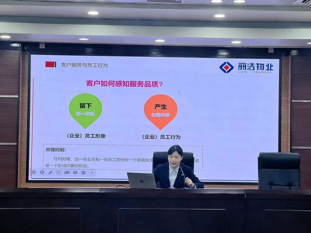 去年末,麗潔服務進駐樂清市行政管理中心,會務能力繼物業服務成為公司業務一大核心內容,為保障公司會務承接能力,不斷優化會務服務細節,公司除接受業主方定向培訓外,還定期針對會務及客服人員開展商務禮儀、會務服務內訓,讓參培人員將服務細節內化于心,讓禮儀成為“肌肉記憶”,不經意間提升業主體驗感與舒適度。